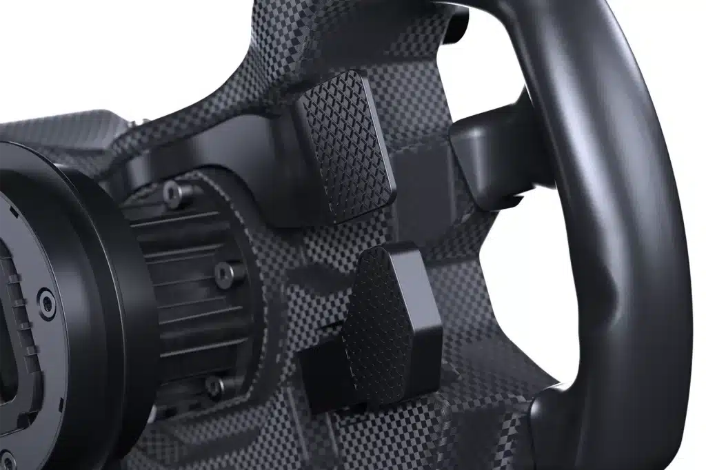 Secondly, the paddles are worn from a single block of anodized aluminum, for maximum realism when shifting gears. What’s more, Fanatec has kept the top paddles in Push-Pull configuration, so you can shift in and out of gear with just one hand. I love that.